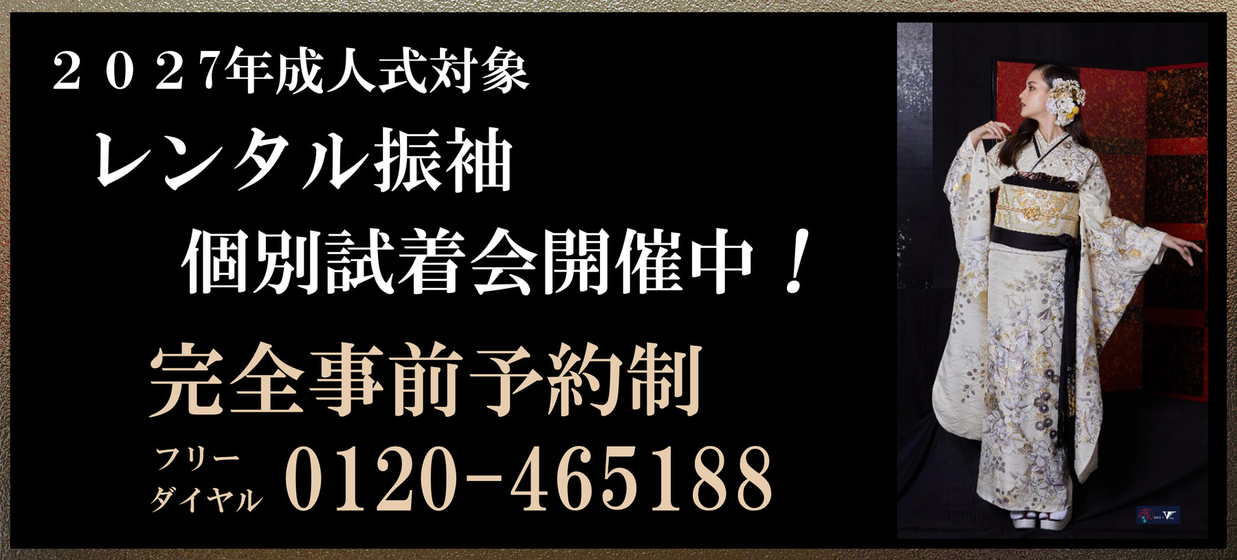 2027年(令和9年)成人式対象の振袖展示個別試着会を上記の期間開催いたします。